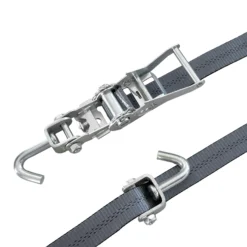 Chingă ancorare auto 3 Tone, bandă 35mm lățime, cu protecție textilă și cârlige rotative. Ideală pentru a transporta în siguranță autoturisme pe platforme de diverse dimensiuni. Protecția textilă din dotare oferă extra aderență la transportul autoturismelor pe platformă și protejează banda chingilor.